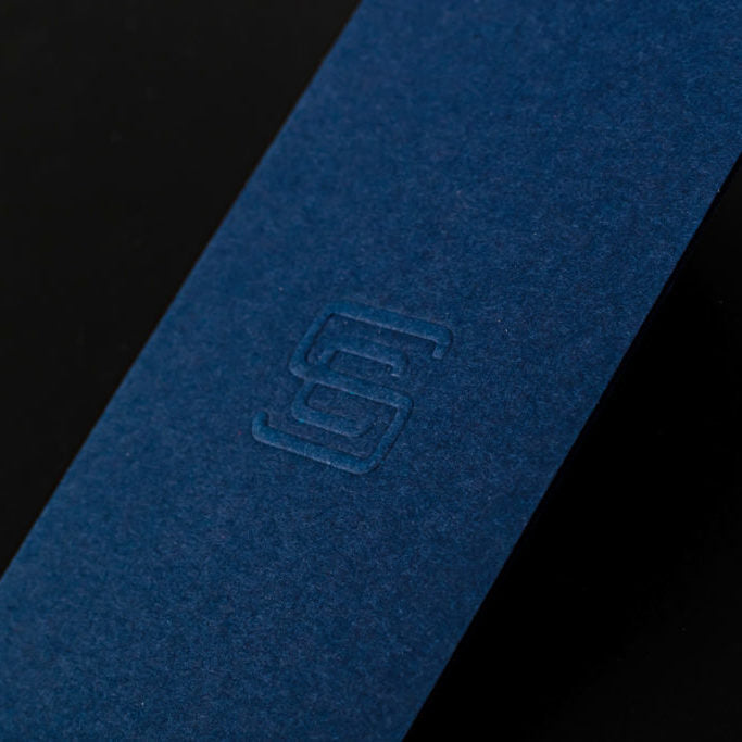 Even though we can emboss silk or soft-touch coated cards, the impression doesn't show up as well as when we use uncoated cards.