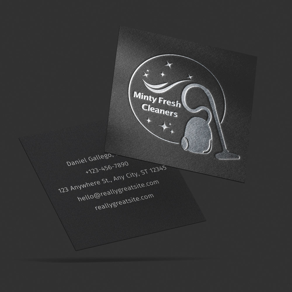 Yes, we offer embossed square business cards. They are a luxurious way to make a statement and leave a lasting impression. Your guests will be impressed by the tactile experience of feeling the raised lettering on your card, and they'll be sure to remember who you are.