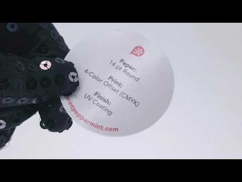 Our standard 2" or 3" diameter circle cards on a basic 16pt matte or gloss stock.